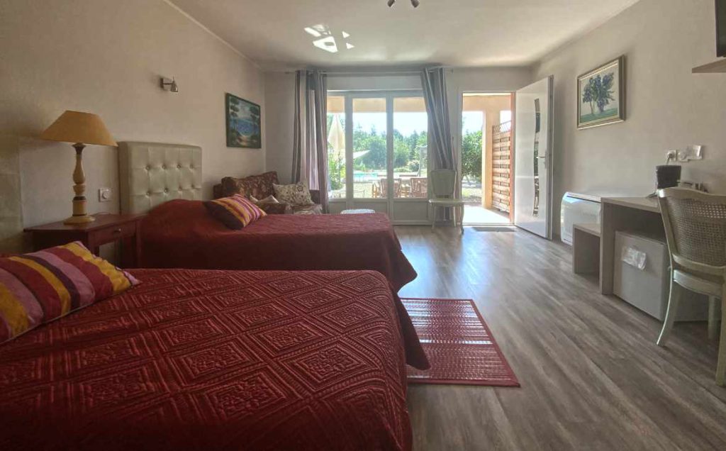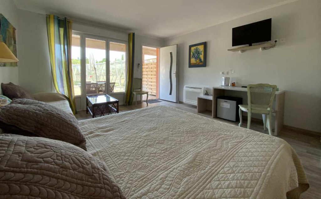 Nos chambres sont disponibles avec un lit  double (160X200) ou en 2 lits simple, s’ouvrent toutes sur une terrasse aménagée avec un salon de jardin. Vous pourrez ainsi profiter d’un espace calme pour vous relaxer ou accéder directement à la piscine et au domaine.