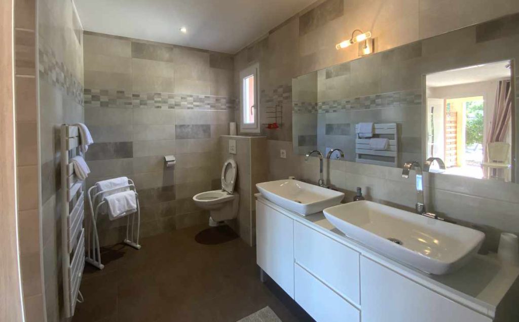 Pour que chacun puisse profiter d’un séjour agréable, une chambre a été spécialement aménagée pour les personnes à mobilité réduite, avec les mêmes prestations et un accès direct à l’espace piscine.